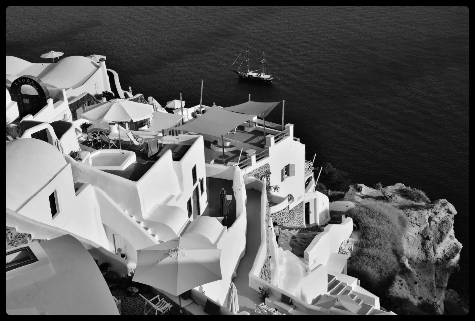 Découvrir Santorin m’aura valu pas mal de marches à dévaler, de ruelles à fouler, entrecoupées d’une seule après-midi à reposer mes guibolles, bien calée en bagnole. J’ai regardé, vitre baissée, la beauté des alentours, assise auprès du meilleur des conducteurs, celui qui, d’année en année, sait maintenir soudés les fils conducteurs de notre amour.